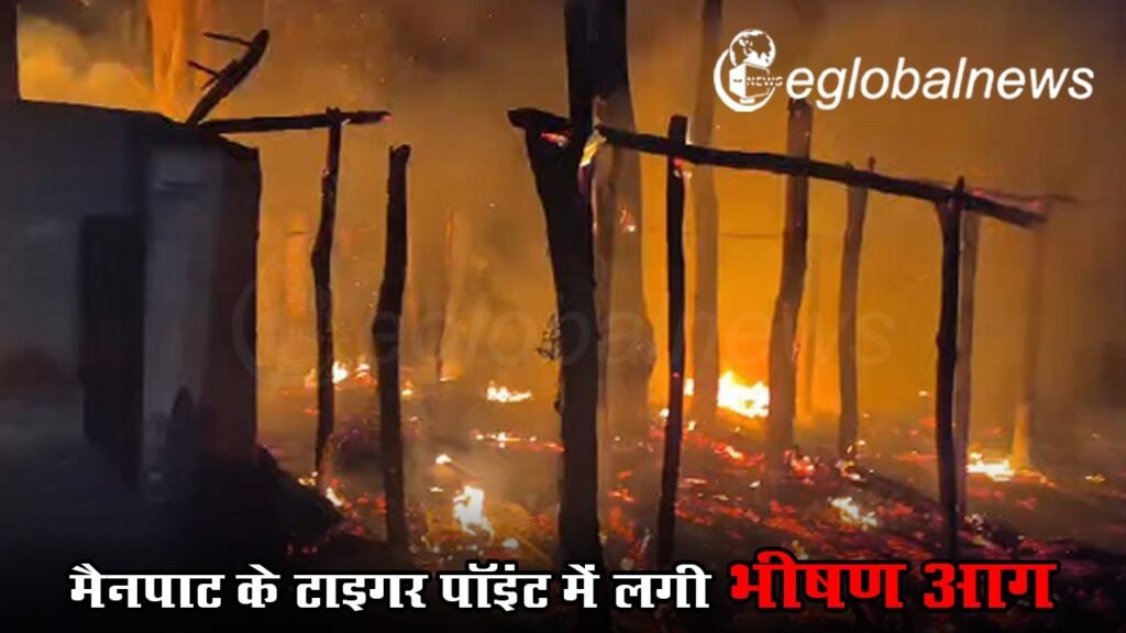 Mainpat Tiger Point Fire: छत्तीसगढ़ के सरगुजा जिले के प्रसिद्ध पर्यटन स्थल टाइगर पॉइंट में शुक्रवार देर रात भीषण आग लगने से अफरा-तफरी मच गई। घटना रात करीब 12 बजे की बताई जा रही है। आग ने देखते ही देखते आसपास बनी झोपड़ीनुमा दर्जनों दुकानों को अपनी चपेट में ले लिया और कुछ ही देर में अधिकांश दुकानें जलकर राख हो गईं।
