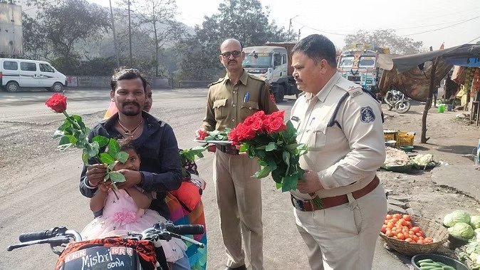 CG News: यातायात नियमों को लेकर लोगों को किया गया जागरुक, लाल गुलाब देकर कानून का पालन करने की अपील