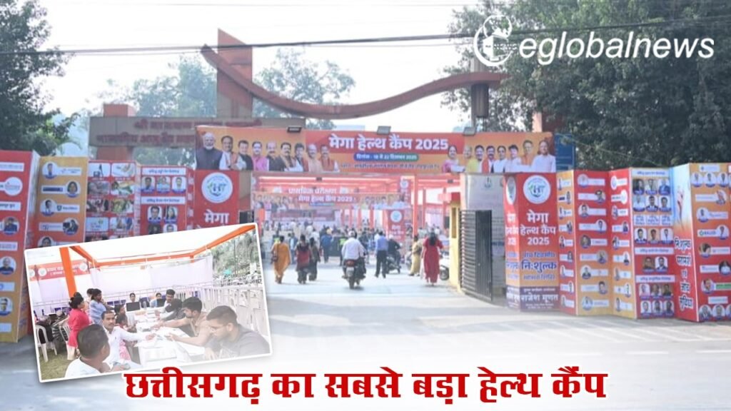 Mega Health Camp 2025: राजधानी रायपुर में गुरु घासीदास जयंती के अवसर पर मेगा हेल्थ कैंप–2025 का भव्य शुभारंभ किया गया। 18 से 22 दिसंबर 2025 तक आयोजित होने वाले इस विशेष स्वास्थ्य शिविर में आम नागरिकों को निःशुल्क इलाज और परामर्श की सुविधा मिलेगी। यह कैंप आयुर्वेदिक कॉलेज परिसर में रोजाना सुबह 9 बजे से शाम 5 बजे तक खुला रहेगा।