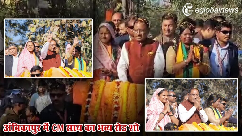 अंबिकापुर में सीएम साय का भव्य रोड शो, महापौर और 48 पार्षद प्रत्याशियों के लिए मांगा समर्थन
