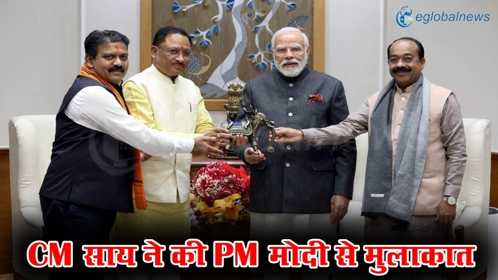 CM Vishnu Deo Sai Delhi Visit: छत्तीसगढ़ के मुख्यमंत्री विष्णुदेव साय ने आज दिल्ली में प्रधानमंत्री नरेंद्र मोदी से मुलाकात की। मुख्यमंत्री साय छत्तीसगढ़ के विकास एवं जनहित से जुड़ी योजनाओं सहित अन्य महत्वपूर्ण विषयों पर चर्चा की।