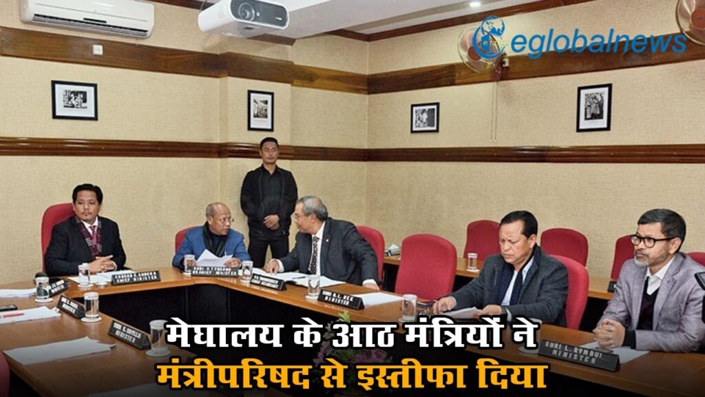 मेघालय मंत्रिमंडल में मंगलवार को फेरबदल होने वाला था। इससे पहले मेघालय के आठ मंत्रियों ने मंत्रीपरिषद से इस्तीफा दे दिया है। मुख्यमंत्री कोनराड के. संगमा ने राजभवन में राज्यपाल सी एच विजयशंकर से मुलाकात की और मंत्रियों के इस्तीफे सौंपे।