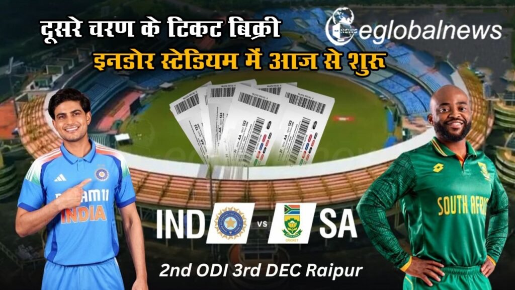 India vs South Africa ODI: छत्तीसगढ़ के नवा रायपुुर में भारत और दक्षिण अफ्रीका के बीच दूसरा वनडे मुकाबला 3 दिसंबर को शहीद वीर नारायण सिंह अंतरराष्ट्रीय क्रिकेट स्टेडियम में खेला जाएगा। मैच के लिए टिकटों की बिक्री जारी है। 28 नवंबर शाम 5 बजे से दूसरे फेज की टिकट बिक्री शुरू होगी। इसमें करीब 17 हजार टिकट बिक्री के लिए उपलब्ध रहेंगी। ऑफलाइन टिकट इनडोर स्टेडियम में मिलेगा।