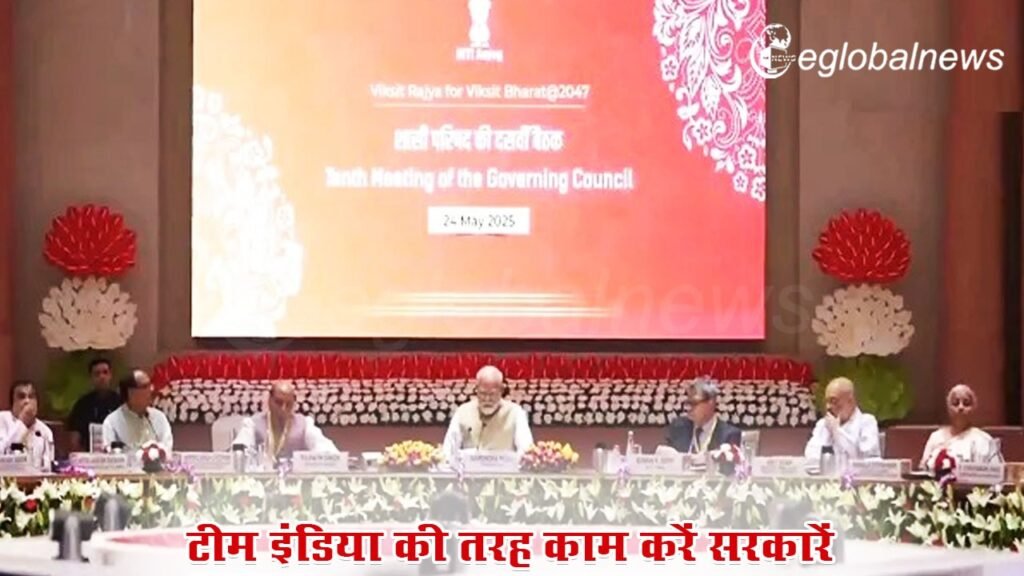 प्रधानमंत्री नरेन्द्र मोदी ने शनिवार को कहा कि अगर केंद्र सरकार और राज्य मिलकर टीम इंडिया की तरह काम करें तो कोई भी लक्ष्य असंभव नहीं है। पीएम नीति आयोग की 10वीं शाषी परिषद की बैठक में बोल रहे थे। प्रधानमंत्री मोदी की अध्यक्षता में नीति आयोग के टॉप निकाय शासी परिषद की 10वीं बैठक शनिवार को नई दिल्ली में शुरू हुई है। इस बैठक का विषय ‘2047 में विकसित भारत के लिए विकसित राज्य’ है। नीति आयोग की शीर्ष इकाई शासी परिषद में सभी मुख्यमंत्री, केंद्रशासित प्रदेशों के उपराज्यपाल और कई केंद्रीय मंत्री शामिल हैं। प्रधानमंत्री मोदी नीति आयोग के पदेन अध्यक्ष हैं। पाकिस्तान में आतंकवादी ढांचों के खिलाफ चलाए गए ‘ऑपरेशन सिंदूर’ के बाद यह सभी राज्यों और केंद्रशासित प्रदेशों के मुख्यमंत्रियों के साथ प्रधानमंत्री मोदी की पहली बड़ी बैठक है।