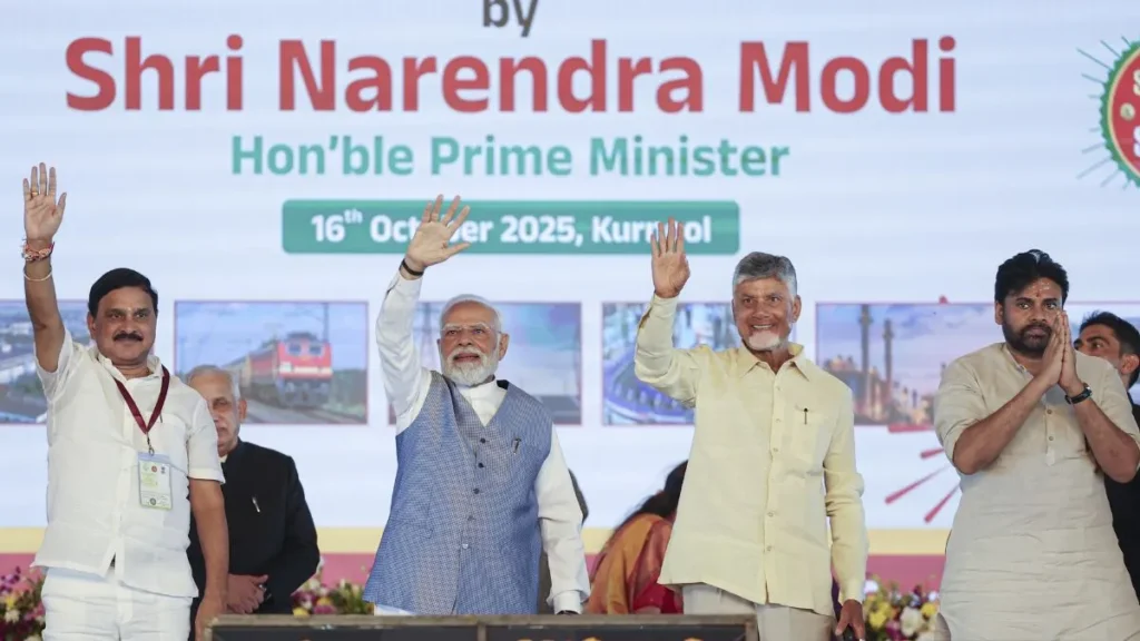 प्रधानमंत्री नरेंद्र मोदी ने आंध्र प्रदेश के कर्नूल में 13,430 करोड़ रुपये की परियोजनाओं का उद्घाटन किया और श्रीशैलम के प्रसिद्ध मल्लिकार्जुन मंदिर में पूजा की। उन्होंने कांग्रेस पर बिजली संकट के लिए निशाना साधा और चंद्रबाबू नायडू की हिंदी भाषण की सराहना की।