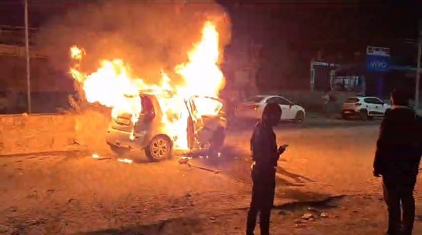 Rajasthan News: कार दिल्ली के नंबर वाली एक कार डिवाइडर से टकराई और उसमें अचानक आग लग गई। स्थानीय लोगों ने तुरंत तीन लोगों को तो बचा लिया, मगर दो सवारी जलती कार में ही रह गईं।